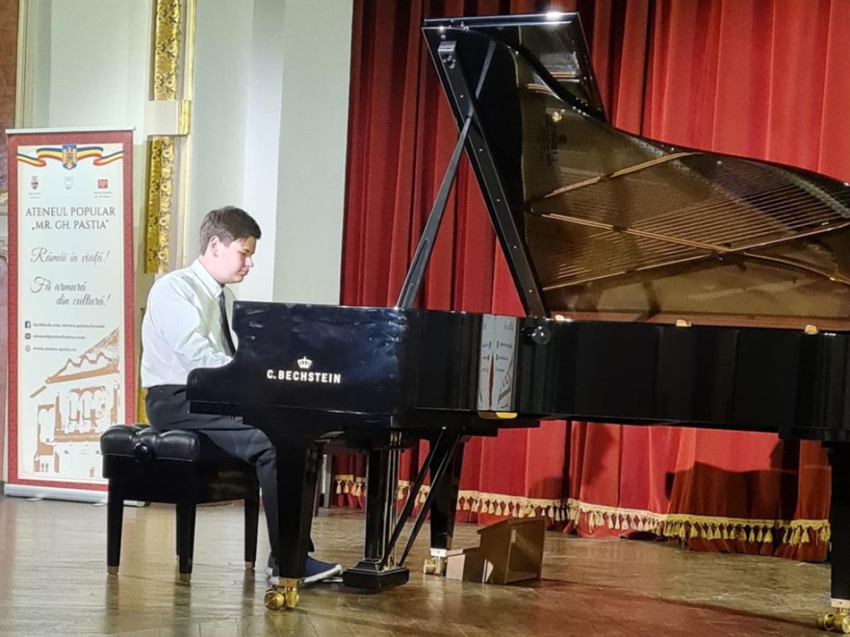 Continuă orele de pian cu prof. Ionuț Cristian Vlad (din anul 2019). Participă la primul concurs național de interpretare pian, „Virtuozii”, unde primește o mențiune. Cu această ocazie, este audiat de renumita și regretata pianistă Ioana Maria Lupașcu, care îi apreciază talentul și îl îndeamnă să continue perfecționarea în arta interpretării. Este nevoit să întrerupă lecțiile de pian pe perioada pandemiei de COVID-19 (2020-2021). Reia lecțiile de pian în anul 2022 și, prin transferul în clasa de muzică a Liceului de Arte „Hariclea Darclée” Brăila, într-un grup cu copii foarte talentați, progresează rapid.