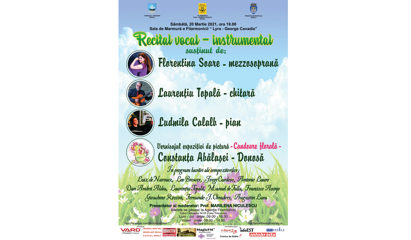 Recitalul va fi susținut de mezzosoprana Florentina Soare, chitaristul Laurențiu Topală și pianista Ludmila Calalb.