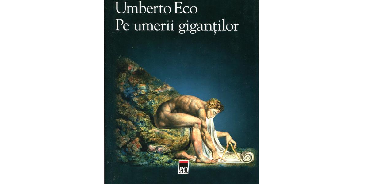 Volumul „Pe umerii giganților” cuprinde douăsprezece prelegeri ale autorului susținute la festivalul „Milanesiana”, între anii 2001 și 2015, textele fiind însoțite de ilustrații pe care Umberto Eco obișnuia să le proiecteze în cursul dizertațiilor sale.