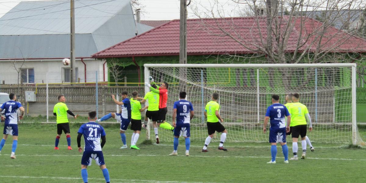 Liderul Ligii a IV-a, Viitorul Cireșu, a câștigat cu 5-0 la Comunal Cazasu, după un meci cu multe ocazii rarisime irosite în repriza a doua de oaspeți, însă trebuie menționat faptul că și formația gazdă și-a creat ocazii, însă nu a avut om de gol în acest joc. Mihai Popa putea dschide scorul în minutul 18 dar portarul gazdelor, Coman, a deviat mingea în bară, apoi a prins-o. Mihai Popa a reușit să înscrie în minutul 25, cu un voleu din cădere, iar mingea l-a prins pe picior greșit pe Coman. Gabriel Niță a reușit o “dublă” în minutele 42 și 45 și la pauză liderul conducea la scor de neprezentare. La trei minute de la reluare, Mocanu a centrat în fața porții, iar Stelian Nicoliță a marcat pentru 4-0. Prima mare ocazie de gol a gazdelor i-a aparținut lui Avramescu (min. 64). Acesta a șutat din lovitură liberă, iar G. Matei a parat cu dificultate mingea. S. Nicoliță (min. 71) a șutat din 3 metri în portar. Ocazii foarte mari de unu la unu cu portarul au fost irosite de formația vizitatoare prin V. Ion, Moldoveanu și Alin Radu. Avramescu și Gorgovan de la gazde au avut de asemenea golul în vârful bocancului, dar au ratat cu nonșalanță. Roșu a marcat în minutul 85 și a stabilit scorul final, 5-0, pentru Viitorul Cireșu.