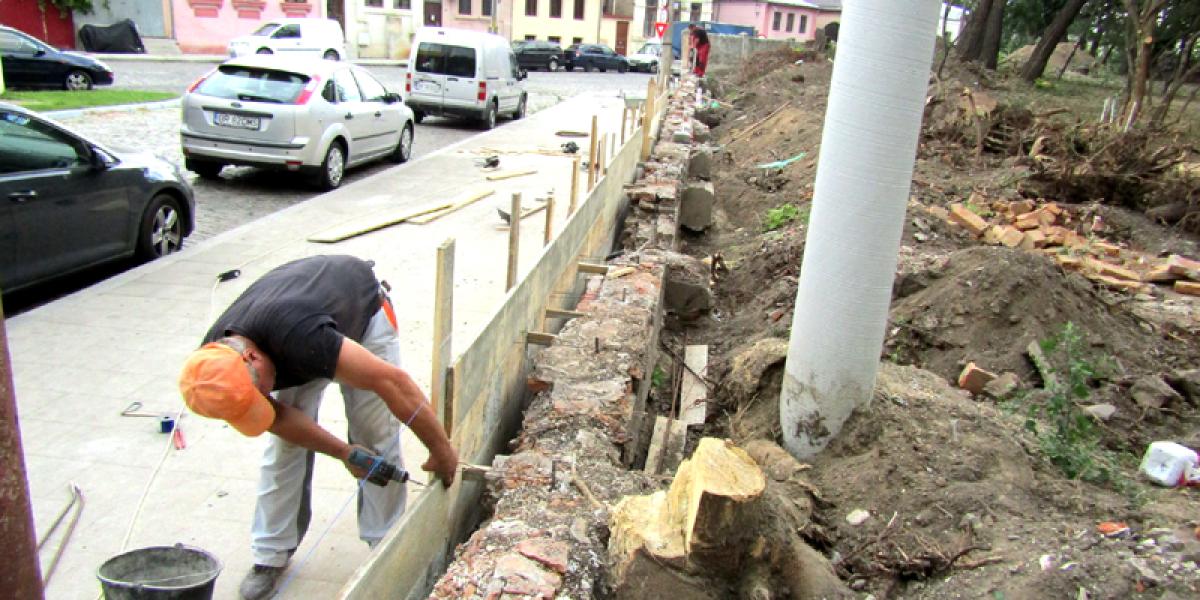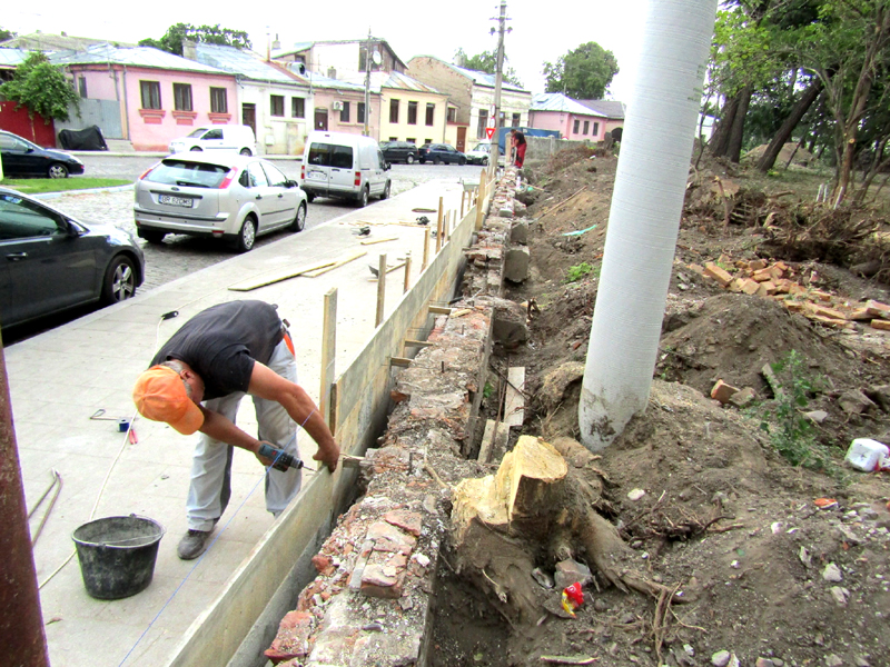 Reabilitarea gardului de la Grădina Mare are un ritm bun de lucru, iar partea dinspre strada Grădina Publică are un grad de execuție destul de avansat, asta deși nu au lipsit problemele cauzate de copacii care le îngrădeau muncitorilor spațiul de manevră, precum și de un transformator electric amplasat și el la limită.