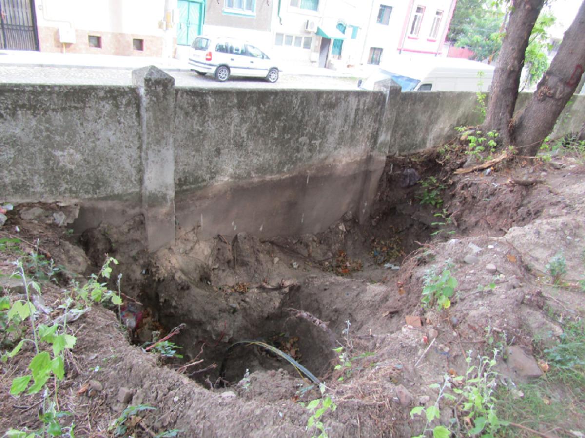 Dar problemele serioase sunt la gardul de pe latura cu Vadul Schelei. Este vorba mai exact despre un zid de beton care a ajuns să fie înclinat spre trotuar și carosabil din cauza unui fapt negândit cu zeci de ani în urmă. Şi anume, plantarea unor copaci la o palmă – două de gard. Care, în timp au ajuns să se lipescă de gard şi acesta să nu mai fie perfect drept.