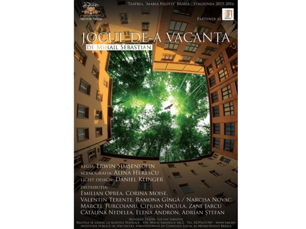 Vineri, 1 MARTIE, de la ora 18.00, la Sala Mare a Teatrului “Maria Filotti” actorii brăileni prezintă piesa “JOCUL DE-A VACANŢA” de Mihail Sebastian, regia Erwin Şimşensohn.