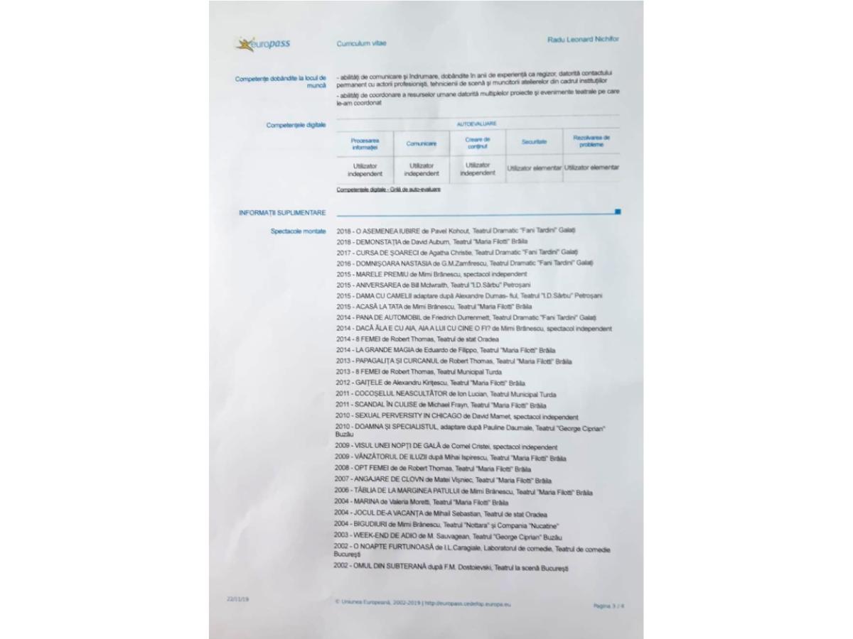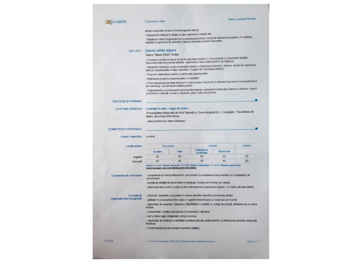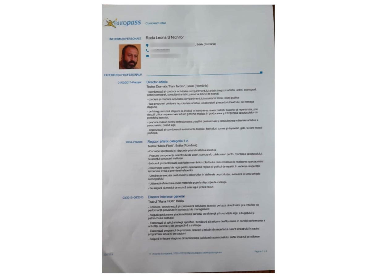 Totodată, aceștia au publicat un CV al noului manager interimar al Teatrului ”Maria Filotti”. Documentul poate fi consultat la secțiunea ”galerie foto”.