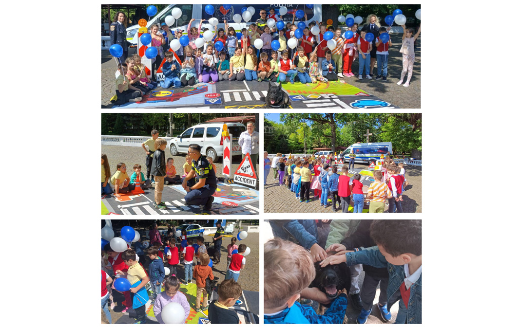 Poliţiştii rutieri au explicat copiilor ce reguli trebuie să respecte în calitate de pietoni sau pasageri în autovehicule, dar şi cum trebuie să îşi aleagă locurile de joacă pentru a nu se expune riscului de a fi accidentaţi. Pentru o mai bună înţelegere şi fixare a noţiunilor teoretice, acestea au fost însoţite de aplicaţii practice, copiii, însoţiţi de poliţişti, au avut posibilitatea sa exerseze comportamentul corect în trafic, pe covorașul rutier tematic .