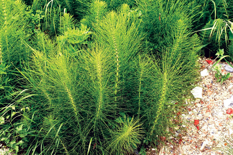 Este una dintre plantele cele mai bogate în bioxid de siliciu. Mai conține saponine și flavonozide. Siliciu ajută la fixarea calciului în oase.