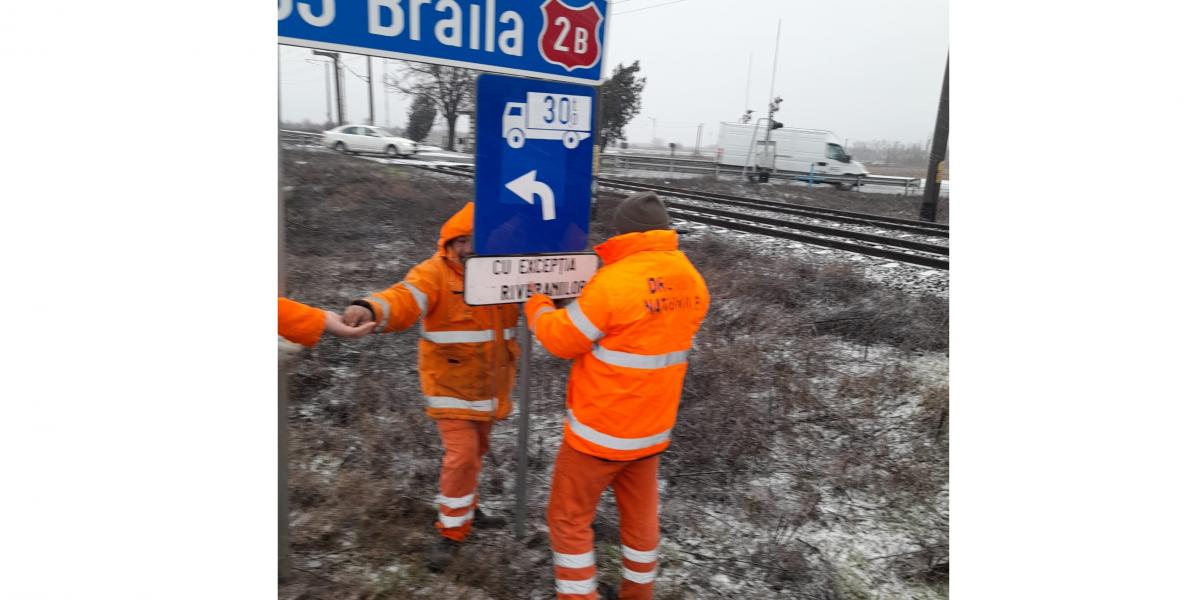 - este interzisă circulația vehiculelor cu masa totală maximă autorizată mai mare de 30 de tone, pe DN 2B, km 47+975, în zona pasajului peste calea ferată din orașul Făurei, pe ambele sensuri de mers;
