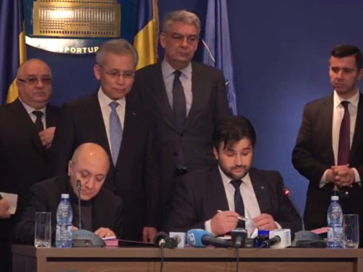 Cu aproximativ două ore înainte de începerea şedinţei Comitetului Executiv al PSD pe tema fierbinte a fricţiunilor Tudose - Dragnea, premierul Mihai Tudose a fost prezent la conferinţa de presă a Ministerului Transporturilor convocată pentru semnarea contractului de proiectare şi execuţie a Podului suspendat peste Dunăre Brăila - Tulcea. Actele s-au perfectat între reprezentanţii antreprenorului general (asocierea italo-japoneză Astaldi - IHI Infrastructure Systems), selectat în urma licitaţiei internaţionale, şi CNAIR, de cealaltă parte, ca beneficiar.