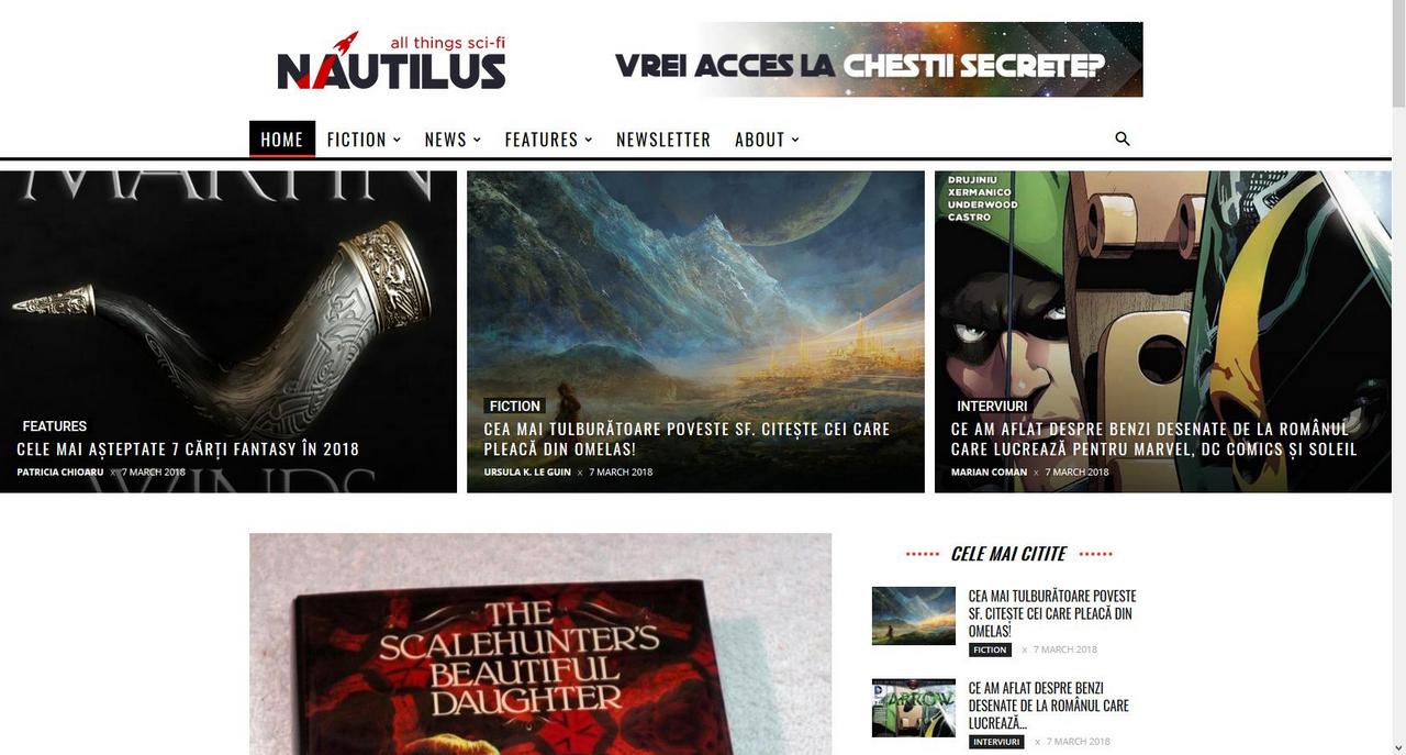 * editura Nemira relansează Revista Nautilus, o platformă on-line dedicată literaturii, filmelor, benzilor desenate și jocurilor science-fiction, horror și fantasy, coordonată de scriitorul Marian Coman