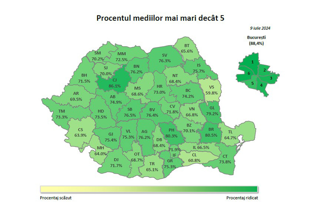 • anul acesta, în premieră, corectarea lucrărilor s-a făcut digitalizat, iar la nivelul județului Brăila nu există diferențe de 2,3 sau 4 între nota inițială și cea finală, așa cum se întâmpla în anii trecuți • cea mai mare diferență între cele două corecturi este de 0,90 puncte • Brăila rămâne pe locul 3 în ierarhia națională