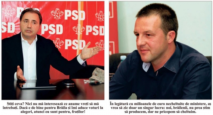Întrebaţi dacă sunt pregătiţi să se sacrifice, să pună umărul, să se zbată pentru atragerea la Brăila a celor 8 milioane de euro necheltuiţi, parlamentarii au dat nişte răspunsuri cel puţin hazlii. Parcurgându-le, simţeai în glasul lor entuziasmul, mobilizarea, deşi niciunul dintre ei nu ştia concret ce anume trebuie să facă pentru a direcţiona banii de la Bucureşti către Brăila. Întrucât spaţiul editorial este restrâns, am selectat declaraţiile doar a doi parlamentari de Brăila, este vorba despre deputaţii Marian Dragomir şi Cristian Rizea, ambii de la USL. Mai întâi, Dragomir: "Este o oportunitate pe care trebuie să o fructificăm în interesul judeţului Brăila. Economia de bani făcută de ministere este un lucru pozitiv, care în final se va reflecta în creşterea finanţării către administraţia publică locală". Şi acum Rizea: "Noi suntem solidari cu dânşii (Primăria şi Consiliul Judeţean). Aşteptăm doar să ni se spună cum putem sprijini acest lucru. Fără doar şi poate nimeni nu cred că are ceva împotrivă. Trebuie să fim alături de cei care conduc judeţul şi să apărăm interesele brăilenilor".