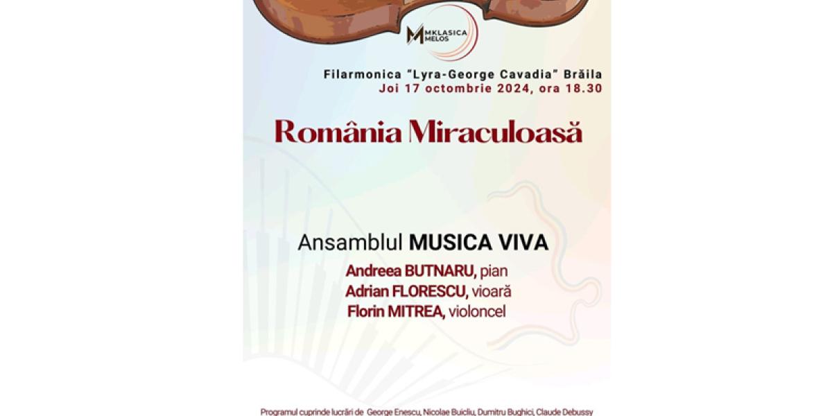 • publicul brăilean iubitor de muzică este invitat de către Ansamblul Musica Viva și Filarmonica „Lyra-George Cavadia”, joi, 17 octombrie, ora 18.30, într-o călătorie sonoră în muzica românească mai puțin cunoscută a anilor 1900-1970 • intrarea este gratuită, în limita locurilor disponibile
