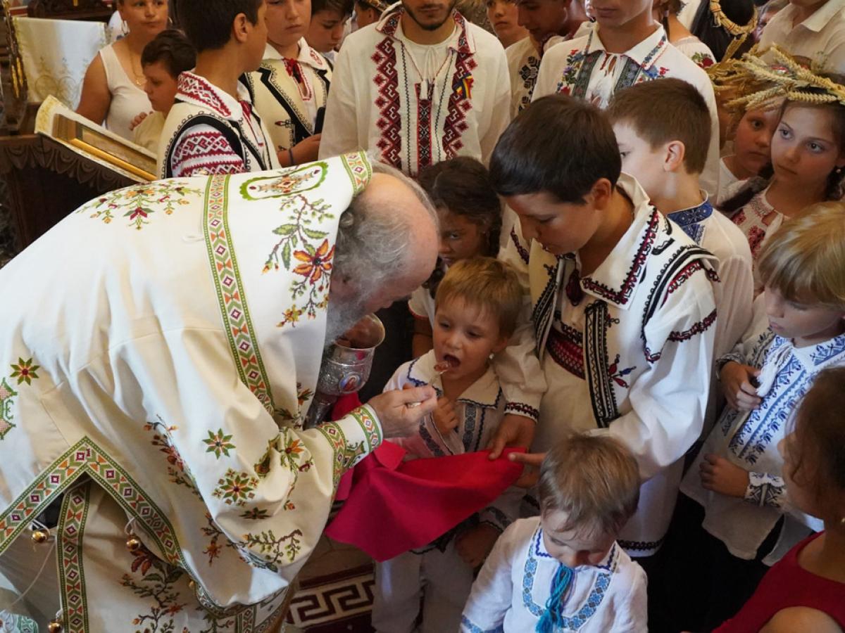 • sute de copii și adolescenți, îmbrăcați în straie naționale, au primit binecuvântarea ierarhului Dunării de Jos la praznicul Nașterii Sf. Ioan Botezătorul • ÎPS Arhiepiscop Casian, împreună cu un sobor de ieromonahi, preoți și diaconi, a săvârșit Sfânta Liturghie la altarul de vară din curtea mănăstirii • ierarhul a oficiat și un Parastas pentru ctitorii sfântului așezământ monahal • credincioșii au participat, apoi, la agapa creștinească pregătită pentru marea sărbătoare • Iustin Țopea, student la Facultatea de Teologie din București, a fost primit ca frate în obștea mănăstirii