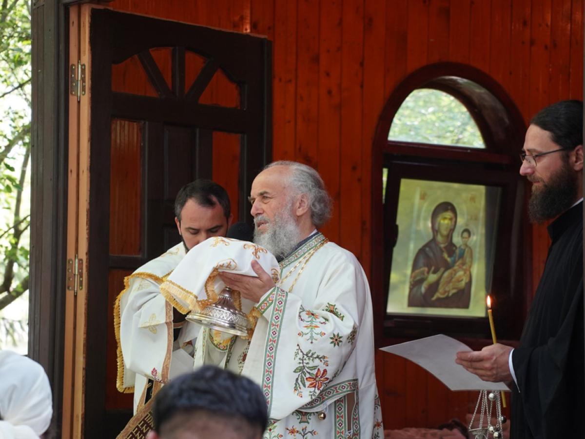 De la Altarul de vară, ierarhul, împreună cu tinerii și copiii prezenți la hram, au mers la biserica ridicată pe locul ruinelor vechii biserici voievodale, unde a săvârșit Parastasul pentru ctitorii și binefăcătorii acestui așezământ monahal.