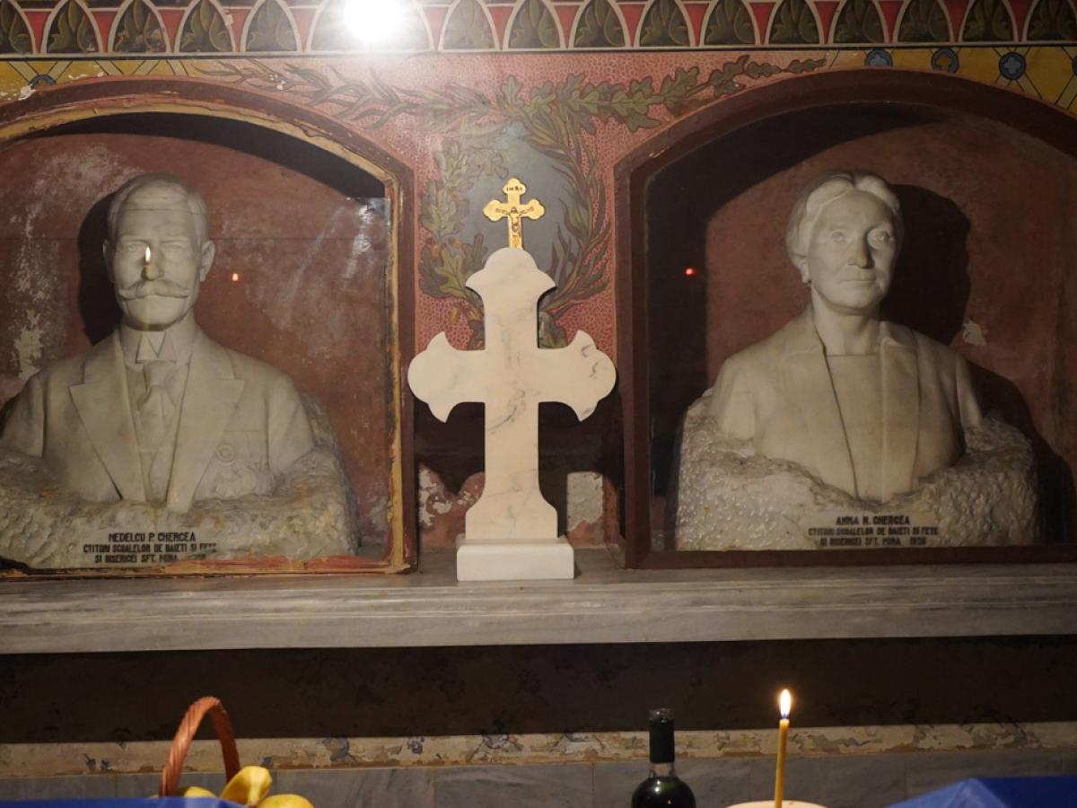 • miercuri, 11 noiembrie, brăilenii din fostul sat Vatra Veche au sărbătorit hramul ctitoriei filantropului Nedelcu P. Chercea şi a soţiei sale, Ana • sfinţită în anul 1928, biserica “Sf. Mare Mucenic Mina” adăposteşte, la demisol, mormintele ctitorilor • ÎPS Casian al Dunării de Jos a oficiat un parastas la mormântul din marmură, învelit în tricolor, al marelui filantrop brăilean • preoţii şi voluntarii parohiei au donat alimente, îmbrăcăminte şi încălţăminte familiilor nevoiaşe