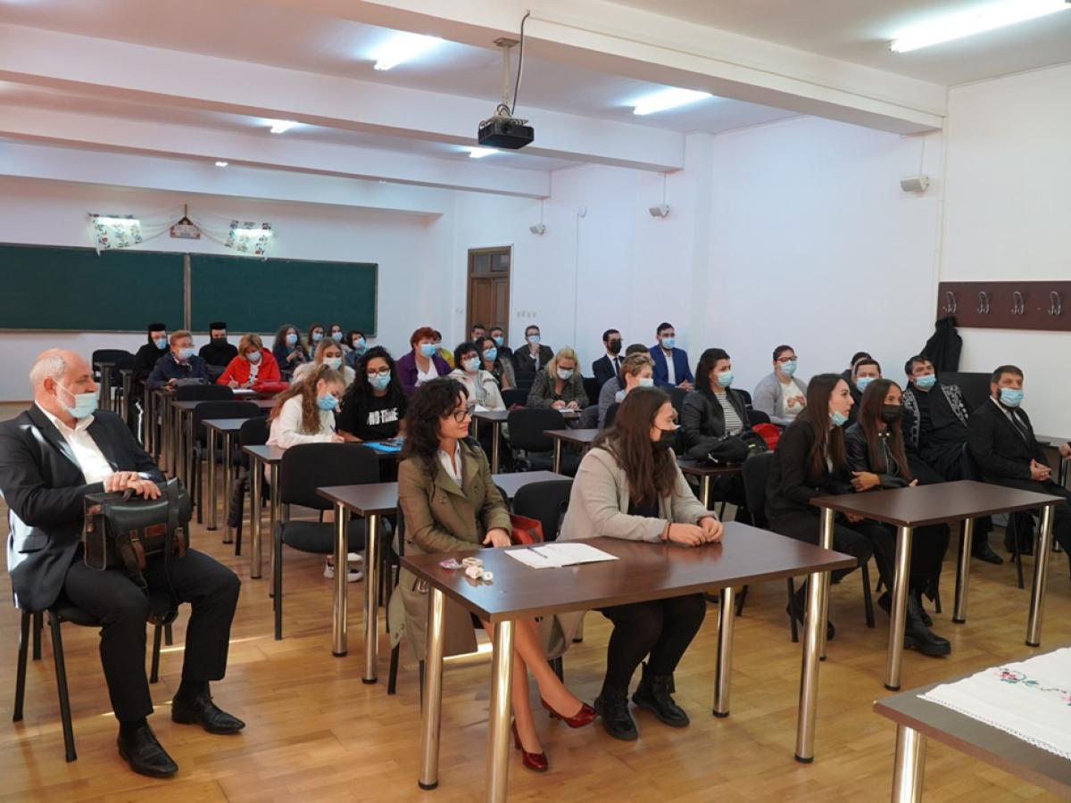 În continuare, în Sala ”Episcop Melchisedec Ștefănescu” (sala AS011) a Facultății de Istorie, Filosofie și Teologie a avut loc o întâlnire a cadrelor didactice cu studenții și masteranzii, în cadrul căreia au fost prezentate informațiile necesare bunei organizări și funcționări a procesului didactic, programul liturgic și de practică pentru noul an universitar.