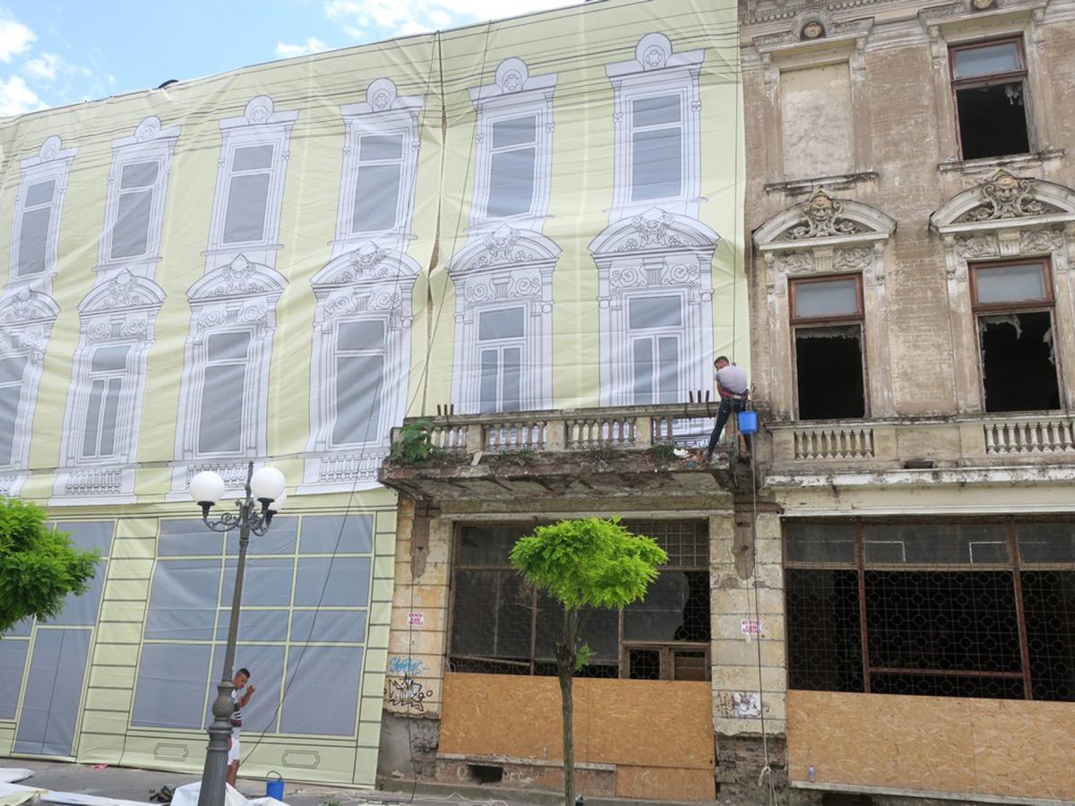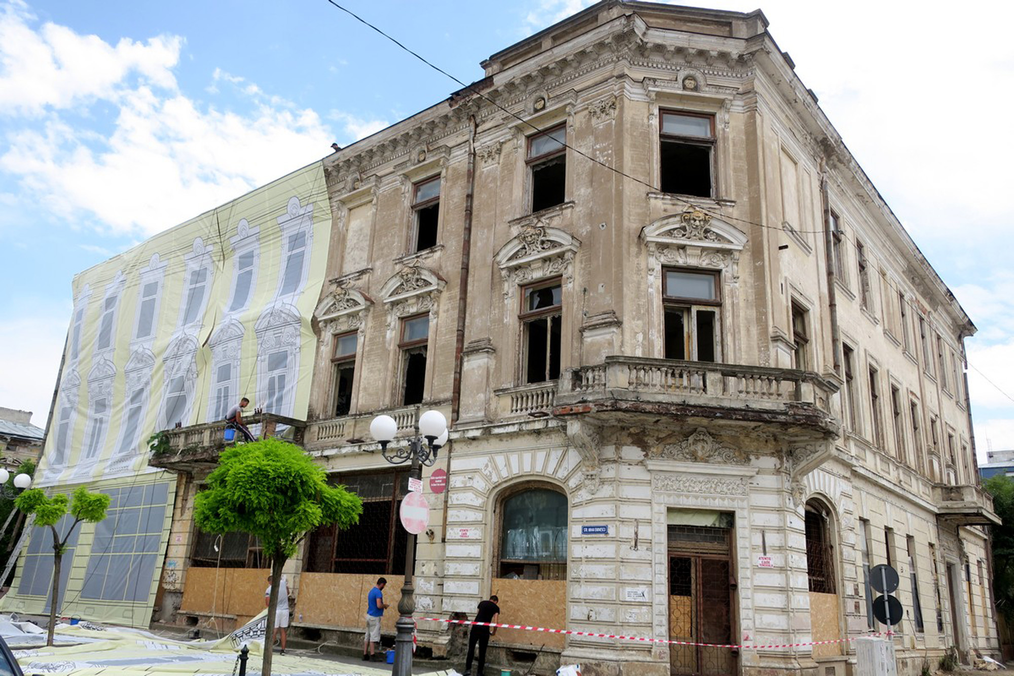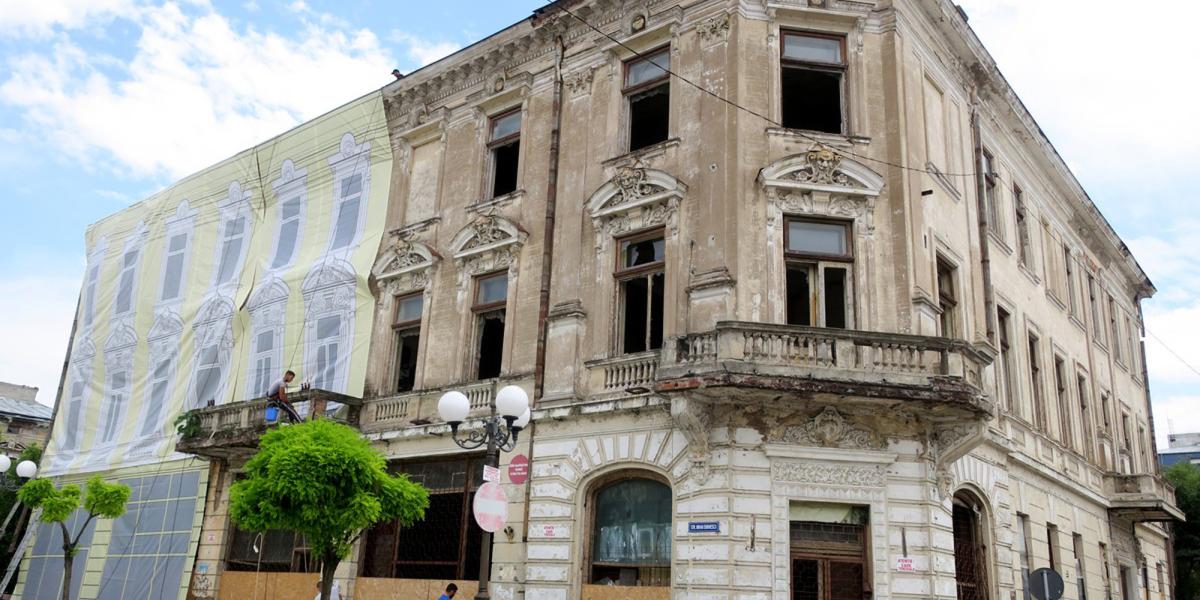 • Primăria dă asigurări că este o măsură temporară, pentru a mai îmbunătăţi aspectul zonei până când clădirea va fi reabilitată propriu-zis • lucrările ar fi putut începe chiar şi anul acesta, spune primarul Dragomir, dacă s-ar fi putut întruni Comisia pentru clasificarea monumentelor istorice, ca să stabilească în ce clasă se încadrează imobilul respectiv • de această clasificare ar depinde felul cum este întocmit proiectul de reabilitare