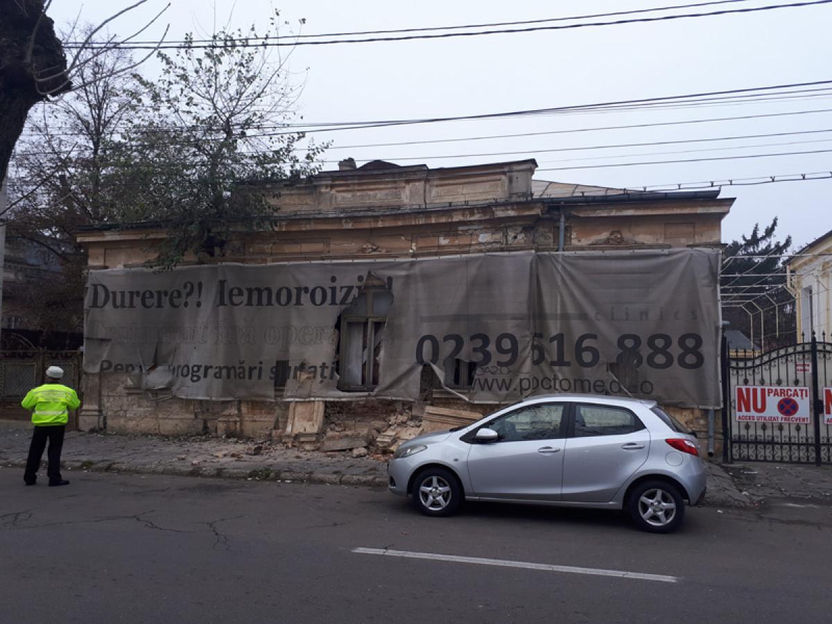 Pericol public pe străzile Brăilei! O clădire în paragină, de pe Bulevardul Alexandru Ioan Cuza din Brăila se prăbuşeşte sub ochii trecătorilor. Este vorba despre un imobil care nu mai are proprietar de peste 28 de ani, timp în care a devenit o ruină, dar şi o capcană pentru trecători, în adevăratul sens al cuvântului. Chiar în cursul zilei de ieri, o bucată uriaşă din zidăria casei s-a desprins şi a căzut pe trotuar, şi de aici până la un risc iminent de prăbuşire a întregului imobil, nu mai este mult. Iar asta se vede cu ochiul liber şi au constatat, din nou, poliţiştii locali, prezenţi ieri la faţa locului. Contactaţi şi întrebaţi ce măsuri iau în acest caz şi dacă va fi cineva tras la răspundere, reprezentanţii Poliţiei Locale din Brăila au transmis că vor reveni cu un răspuns în cel mai scurt timp. La rândul lor, vecinii sunt exasperaţi şi se tem să nu le cadă în cap acest imobil. “Partea asta de sus cade, peretele ăla din lateral e dus înspre curtea mea şi mi-e frică pentru că poate să cadă oricând”, se plânge un proprietar din apropiere.