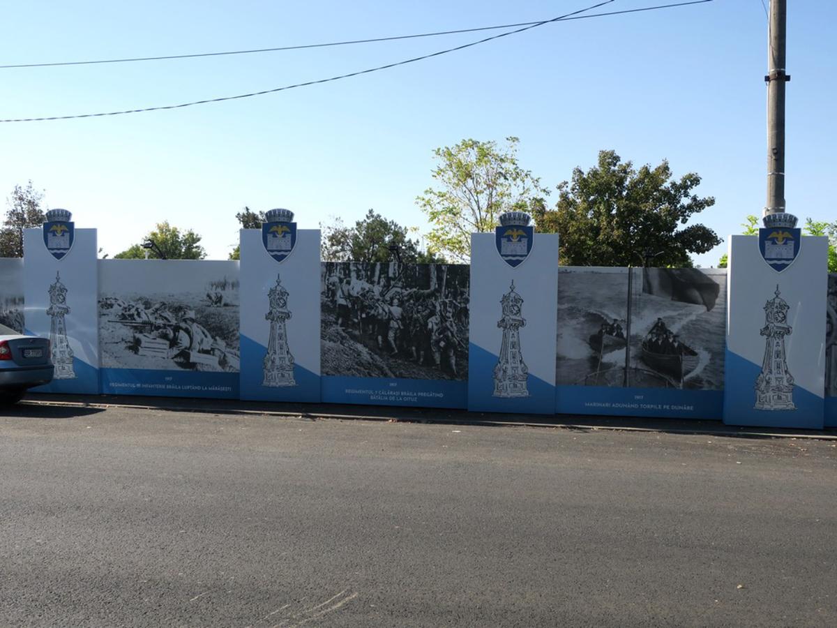 Astfel, a fost “placat”, pe zeci de metri, cu panouri de mari dimensiuni, fixate pe profile metalice de câte 2x3 metri fiecare, ce prezintă succint, într-un mod inedit, evenimente importante din istoria oraşului, începând cu imaginea Cetăţii Brăilei, ridicată de turci în timpul vremelnicei lor stăpâniri (1540-1829) şi dărâmată de oştile ruseşti şi terminând cu militari brăileni (contemporani) aflaţi în misiuni de cercetare.