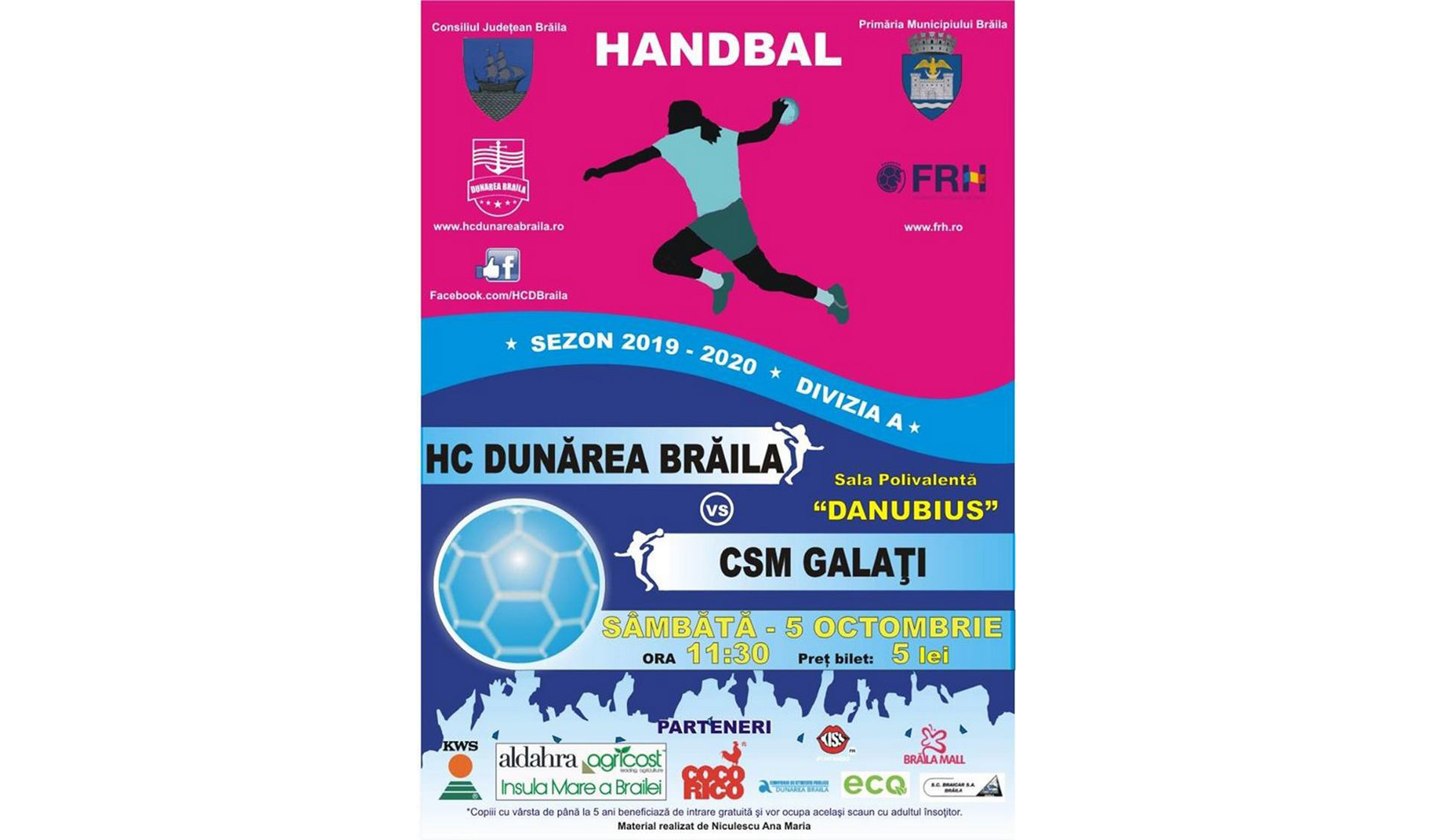 În schimb, sâmbătă, iubitorii handbalului din Brăila pot veni la Sala Poplivalentă pentru a susţine echipa de Divizia A a clubului brăilean care va juca în compania liderului Seriei A, CSM Galaţi.