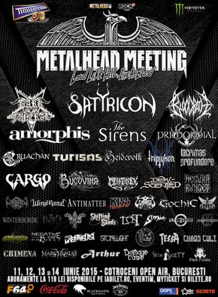 Mai sunt doar câteva zile până la startul unuia dintre cele mai importante evenimente ale anului pentru ascultătorii de muzică rock şi metal. Festivalul Metalhead Meeting 2015 va avea loc în capitală, între 11 şi 14 iunie pe Cotroceni Open Air, în spatele Afi Palace Cotroceni, într-o locaţie Open Air de 22.000 de metri pătraţi. Participanţii la eveniment îi vor putea vedea live în cadrul celor 4 zile de concerte pe Satyricon, Dark Funeral, Amorphis, Bloodbath, The Sirens, Primordial, Cruachan, Turisas, Heidevolk. Triptykon, Lacrimas Profundere, Windrose, Centinex, Demonical, Bucovina, Negură Bunget, Kiss Forever şi mulţi alţii din totalul de 45 de trupe prezente pe cele două scene ale festivalului. Trebuie precizat că seara de joi, prima zi a Metalhead Meeting, va oferi şi un show aniversar "Cargo - 30 de ani", concert, pentru care au fost puse în vânzare şi bilete de doar o singură zi cu preţuri de la 40 de lei.