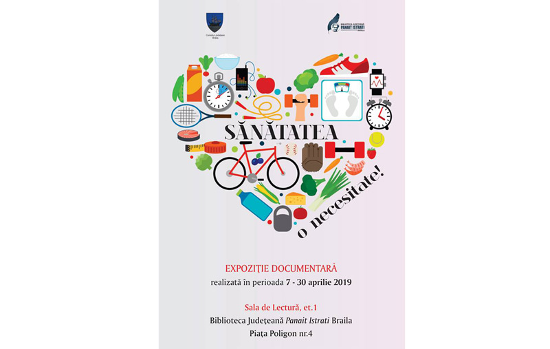 Începând din anul 1950, la data de 7 aprilie, în fiecare an, este marcată Ziua Mondială a Sănătăţii. Cu acest prilej, la Sala de lectură a Bibliotecii Judeţene “Panait Istrati” a fost realizată o expoziţie documentară care cuprinde o serie de cărţi inspiraţionale despre un mod de viaţă sănătos. Expoziţia este realizată de Carmen Damian, bibliotecar în cadrul instituţiei, şi este deschisă până pe data de 30 aprilie 2019.