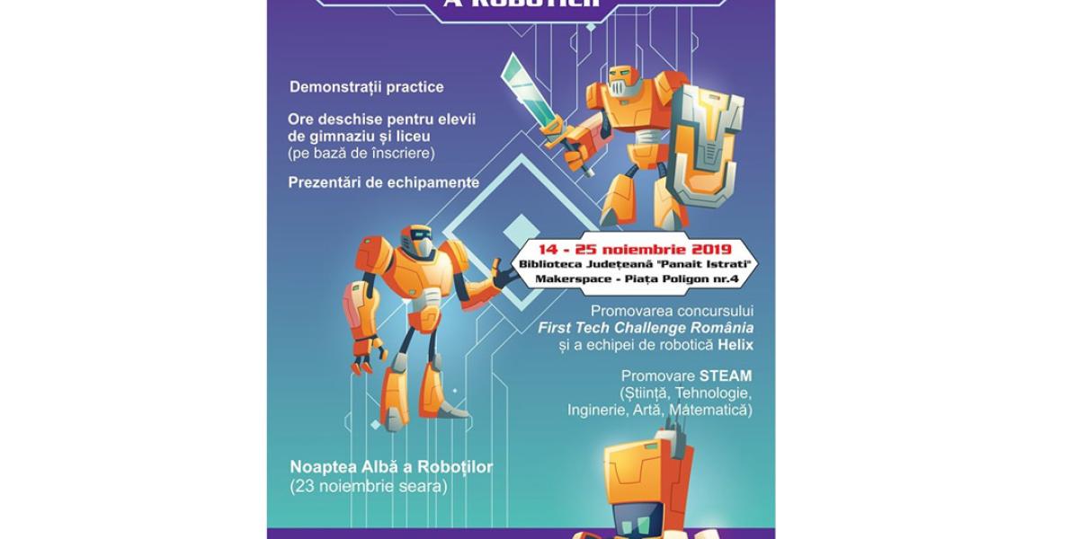 Săptămâna Roboticii se va încheia la bibliotecă cu “Noaptea Albă a Roboţilor”, care va avea loc sâmbătă seara, pe 23 noiembrie.