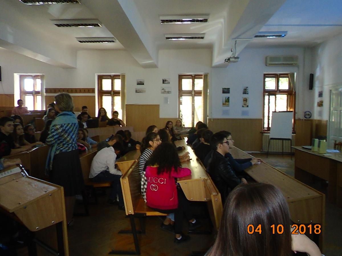 Astfel, pe 4 octombrie, Săptămâna Mondială a Spaţiului a fost deschisă cu o sesiune de comunicări ştiinţifice ce a avut loc în amfiteatrul Colegiului “Murgoci”. Elevii din clasele a V-a, a VII-a, a-IX-a, a X-a şi a XI-a, coordonaţi de prof. Nazeli Boicescu, Daniela Covaci, Daniela Drăghici, Mihaela Giurcă, Viorica Moşescu şi Roxandra Murea, au abordat teme diverse din cadrul proiectului. Una dintre acestea a fost “poluarea de lumină”, radiaţia luminii care ajunge direct sau indirect la cer, în timpul nopţii. Elevii au arătat că poluarea luminoasă nu este o consecinţă a iluminatului public, dar este o consecinţă a iluminatului public inadecvat. Din cauza design-ului necorespunzător al lămpilor private de iluminat sau al modului în care sunt aşezate pe piloni, mai mult de 30% din lumina produsă este pierdută, pentru că ajunge direct către cer. Este ca şi cum am merge la cumpărături şi am pierde 30% din banii pe care îi avem în buzunar din cauză că acesta este rupt. Mai mult, cercetătorii au descoperit că poluarea luminoasă nu înseamnă numai o pierdere mare de bani, dar şi un risc mai mare de producere al accidentelor rutiere.