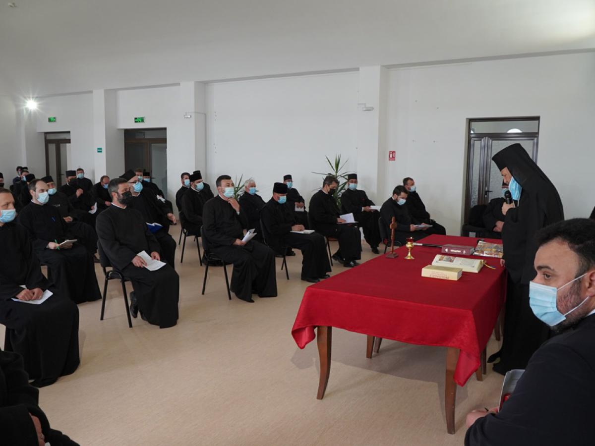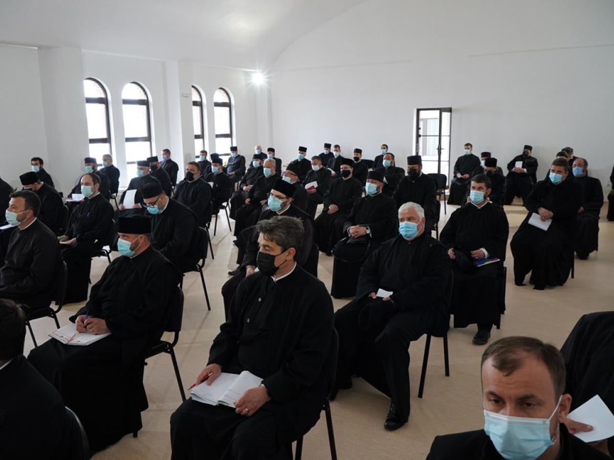 "După rostirea rugăciunii și cuvântul de deschidere, ierarhul le-a prezentat celor prezenți cele mai recente hotărâri ale Sfântului Sinod și comunicările de ultimă oră ale Cancelariei Sfântului Sinod. Au fost discutate aspecte legate de pregătirea și buna organizare, în timp de pandemie, a evenimentelor religioase prilejuite de Săptămâna Sfintelor Pătimiri, praznicul Învierii Domnului, sărbătoarea Izvorului Tămăduirii și Paștele Blajinilor", a precizat pr. consilier.