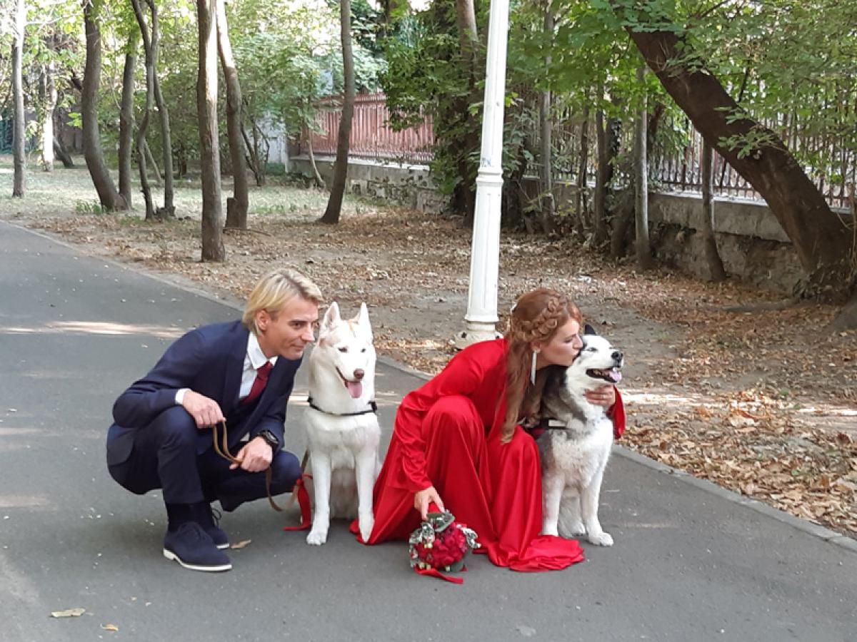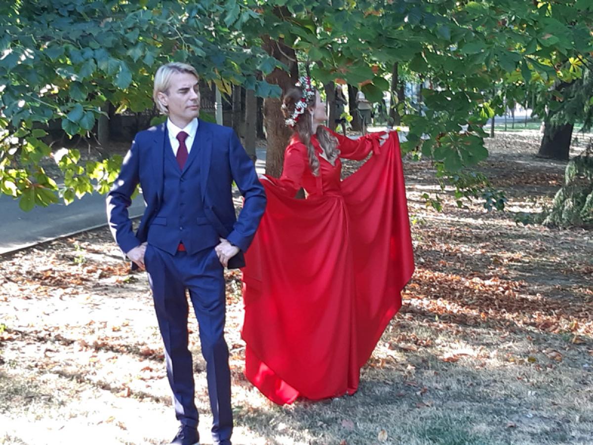 Atmosfera de sâmbătă a fost una deosebită, Oana, într-o rochie roşie electrizantă, cu o coroniţă din floricele albe şi roşii, şi Adi, îmbrăcat la costum şi cu cravată, alături de Maya şi DeeDee, reuşind să atragă atenţia tuturor celor din jur în timpul şedinţelor foto.