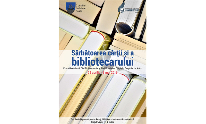 Biblioteca Judeţeană Panait Istrati Brăila marchează Sărbătoarea cărţii şi a bibliotecarului printr-o expoziţie documentară care poate fi vizitată la parterul Secţiei Împrumut pentru Adulţi în perioada 23 aprilie – 8 mai 2019. Ziua de 23 aprilie a devenit o zi de dublă sărbătoare: această zi a fost declarată, începând cu anul 1999 şi Ziua Naţională a Bibliotecarului - ziua de 23 aprilie fiind deja declarată în 1995, la iniţiativa UNESCO, Ziua mondială a cărţii şi a dreptului de autor.
