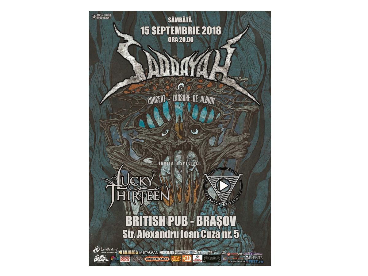 • “Psihoza death metalului contaminează Braşovul!”, anunţă organizatorii evenimentului de extreme metal ce va avea loc sâmbătă, 15 septembrie, în British Pub din Braşov • concertul este dedicat lansării primului album al trupei de death metal din România Saddayah, intitulat “Apopheny of Life” • în deschidere: Lucky Thirteen şi Twist of Fate