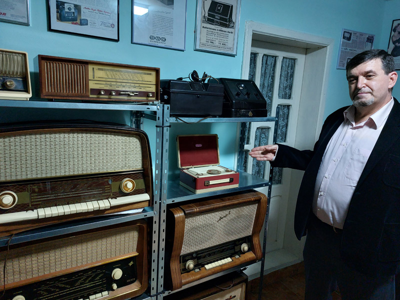 În perioada când își desfășura activitatea ca inginer service naval, brăileanul a vizitat câteva muzee de radiouri (Nicolis, din Italia, B&O Struer, din Danemarca etc), unde, însă, exponatele nu erau funcționale. Din 2018 încoace, el a reușit să adune în colecție exponate diverse, deosebit de valoaroase: radiouri staționare, portabile, cu carcase din lemn, lemn și plastic, metalice etc, din perioada 1925 - 1965. Cel mai vechi exponat este un radio din anul 1925, construit de firma "Siemens & Halskie", model "Rfe 6". Acesta este un aparat de radio cu detector de cristal și recepție cu căști. Era atât de bine construit, spune inginerul, încât permitea audiția nu doar în una, ci în două perechi de căști. Un alt exponat de valoare este radioul "Siebt 3", construit în anul 1931, de firma "Dr. Georg", din Berlin, cu patru lămpi, la care audiția se realiza în căști sau difuzor portabil.
