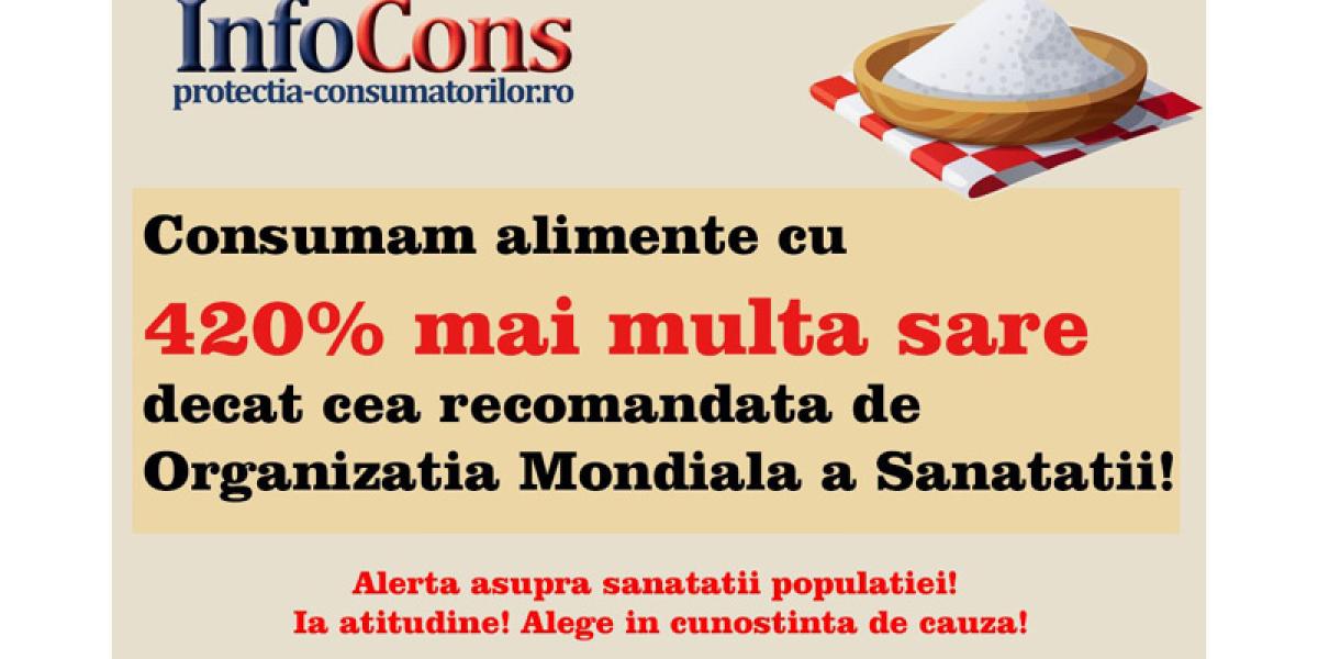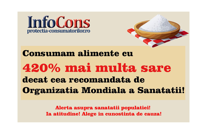 În acest context, precizează InfoCons, Organizația Mondială a Sănătății a stabilit repere globale pentru nivelurile de sare maxim admise din alimente, pentru 60 de categorii de produse. Reperele propuse de OMS au ca obiectiv principal reducerea cu 30% a aportului global de sare până în anul 2025. Aceste repere pot stopa producerea alimentelor procesate ce reprezintă o sursă majoră a consumului de sare, în special în țările în care consumul acestor produse crește rapid. Conform studiilor și testelor comparative realizate de InfoCons pe diferite produse agroalimentare, de cele mai multe ori, cantitatea de sare regăsită în aceste produse procesate depășește cu până la 420% recomandarea Organizației Mondiale a Sănătății (!).