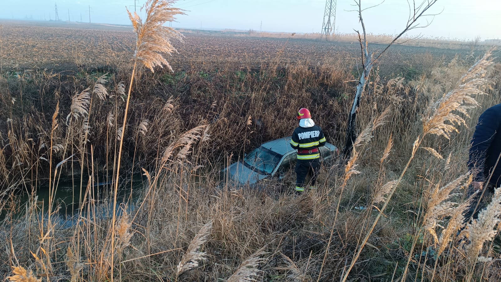 Pentru scoaterea autoturismului din canal a intervenit Serviciul Voluntar pentru Situații de Urgență din comuna Romanum cu un
