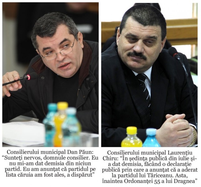 Concret, ieri în cadrul şedinţei ordinare a Consiliului Local Muncipal Brăila, PNŢCD şi PDL au făcut apel la legalitate şi au cerut introducerea pe ordinea de zi a unui proiect de hotărâre privind reglementarea situaţiei juridice a consilierului Dan Păun. Ales local, care, ba se declară independent, ba şef în partidul lui Călin Popescu Tăriceanu. Dacă preţ de două minute, atmosfera a fost una calmă, cu luări de cuvânt civilizate şi argumente bine întemeiate, pe parcurs discuţiile au escaladat până la ameninţări cu DNA şi plângeri penale. "În cazul domnului Păun, calitatea de consilier încetează de drept înainte de termen în următoarele condiţii: demisia sau pierderea calităţii de membru al partidului politic pe listele căruia a fost ales. Deci dânsul a fost ales pe nişte liste ale unui partid politic, dar după aceea, în şedinţa publică din iulie, şi-a dat demisia, făcând o declaraţie publică prin care a anunţat că a aderat la partidul lui Tăriceanu. Asta, înaintea Ordonanţei 55 a lui Dragnea. Problema este destul de clară. Nu avem cum să o tergiversăm sub nicio formă. Având situaţia asta, intrăm în partea cealaltă şi ajungem colegi cu cei de la Mediaş. Aşa că cine vrea să-şi asume această situaţie, n-are decât ! Deci dânsul şi-a pierdut calitatea de consilier în momentul când şi-a dat demisia din PER. Sunt cel puţin 3 persoane care vor depune plângere în contencios administrativ. Vreau să mergem în cadrul legal. Aţi văzut la Mediaş. Pot spune că boicotez prin a nu participa la niciun vot la proiectele de hotărâre", a declarat, ieri, consilierul PNŢCD, Laurenţiu Chiru.