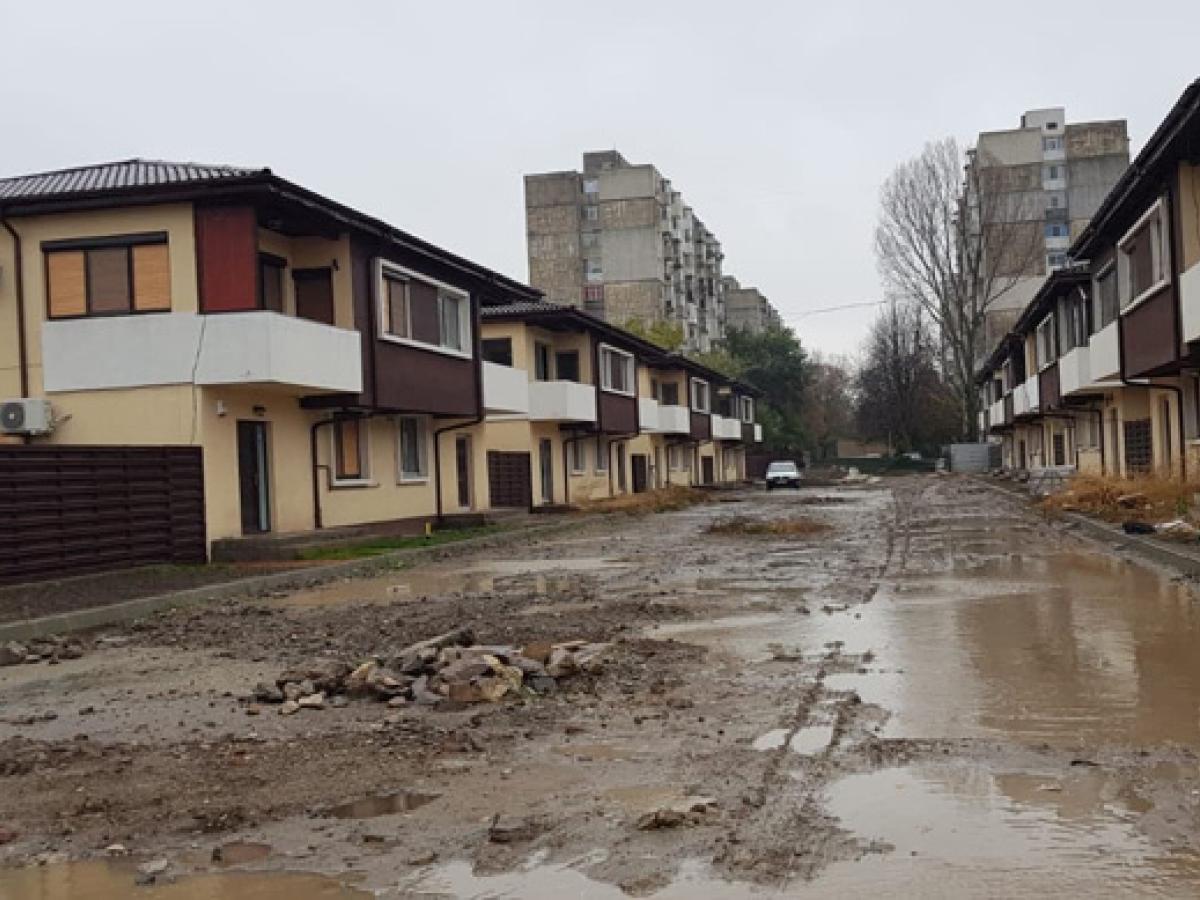 • locuitorii complexului rezidenţial de la fosta unitate militară Caporal Muşat sunt extrem de revoltaţi pentru că termenele proiectului investiţional au fost cu mult depăşite • oamenii se plâng că străzile nu au fost asfaltate bine, altele deloc, că nu au iluminat public funcţional, că se adună munţi de gunoaie în cartier, că nu mai au spaţii verzi pentru copii • situaţia este şi mai gravă cu cât s-au adunat datorii de peste 100.000 lei la apă, fiind şi un proces pe rol între dezvoltator şi Compania de Utilităţi Publice Dunărea Brăila, iar unii dintre locatari au refuzat să mai plătească • reprezentatul dezvoltatorului, Alexandru Ivan, susţine că multe dintre acuzaţii sunt exagerate • deşi recunoaşte că proiectul a întârziat, acesta afirmă că este mulţumit de ce s-a realizat până acum şi promite că în primăvara acestui an investiţia va fi gata