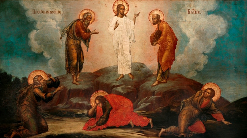 La acea vreme, glăsuiesc Sfintele Scripturi, luând Mântuitorul Iisus Hristos pe Petru, pe Iacov şi pe Ioan pe muntele Taborului, “S-a schimbat la faţă înaintea lor şi a strălucit faţa Lui ca soarele, iar vestmintele Lui s-au făcut albe ca lumina. Şi iată, Moise şi Ilie s-au arătat lor, vorbind cu El. Şi răspunzând, Petru a zis Lui Iisus: «Doamne, bine este să fim aici; dacă voieşti, voi face aici trei colibe: Ţie una, lui Moise una şi lui Ilie una». Vorbind el încă, iată un nor luminos i-a umbrit pe ei şi iată glas din nor zicând: «Acesta este Fiul Meu cel iubit; pe Acesta ascultaţi-L». Şi auzind, ucenicii au căzut cu faţa la pământ şi s-au spăimântat foarte”. (Matei 17, 2-6; text paralel Marcu 9, 2-7; Luca 9, 28-36).