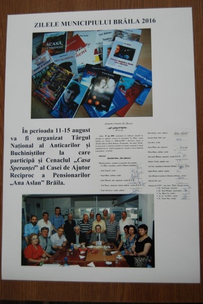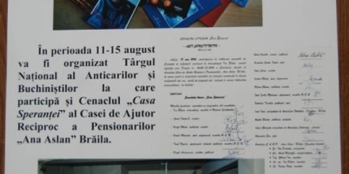 Lucrările vor fi expuse spre vânzare, iar unele vor putea fi donate de către autori persoanelor interesate. Totodată, brăilenii îi pot cunoaşte la standul respectiv pe membrii cenaclului, pot obţine autografe pe cărţile achiziţionate sau pot schimba impresii despre articolele publicate în revista "Casa Speranţei", editată şi distribuită gratuit de Asociaţia C.A.R.P. "Ana Aslan " Brăila.