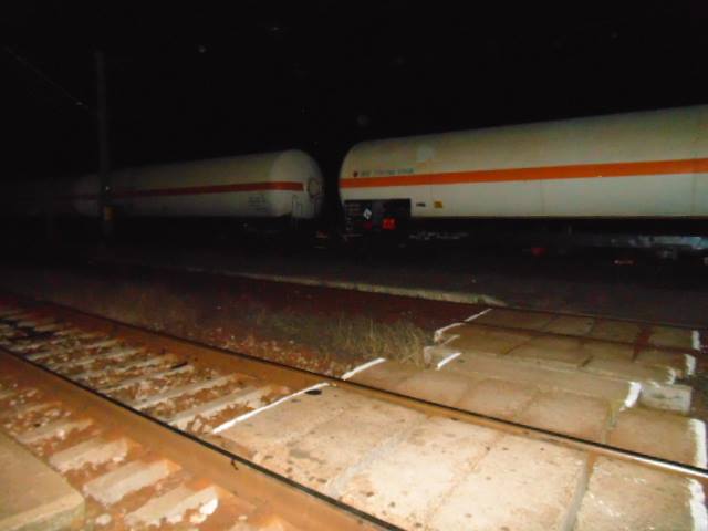 * numai o întâmplare fericită a făcut ca vagonul cu defecțiuni la vana de alimentare să fie staționat chiar în dreptul impiegatului, care a sesizat imediat scurgerea de propan * situația a fost remediată de o echipă de la Galați * la fața locului au fost polițiști TF, pompieri și reprezentanți CFR