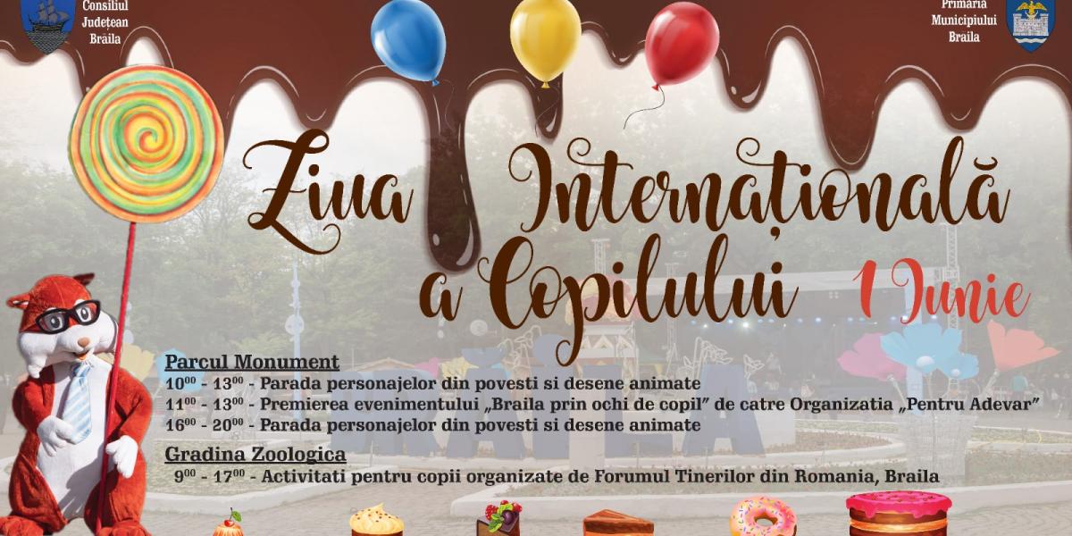 Astfel, marți, de 1 iunie, în Parcul Monument, începând cu ora 10.00, copiii sunt așteptați pentru a urmări ”Parada personajelor din povești și desene animate”, care le vor dărui baloane și dulciuri. De la ora 11.00, va avea loc premierea Concursului de desene ”Brăila prin ochi de copil”, organizat de către Asociația ”Pentru Adevăr” și în cotidianul ”Obiectiv”. Distracția în Parcul Monument va continua și după-amiaza, între orele 16.00-20.00 fiind programată o nouă paradă a mult iubitelor personaje din povești și desene animate.