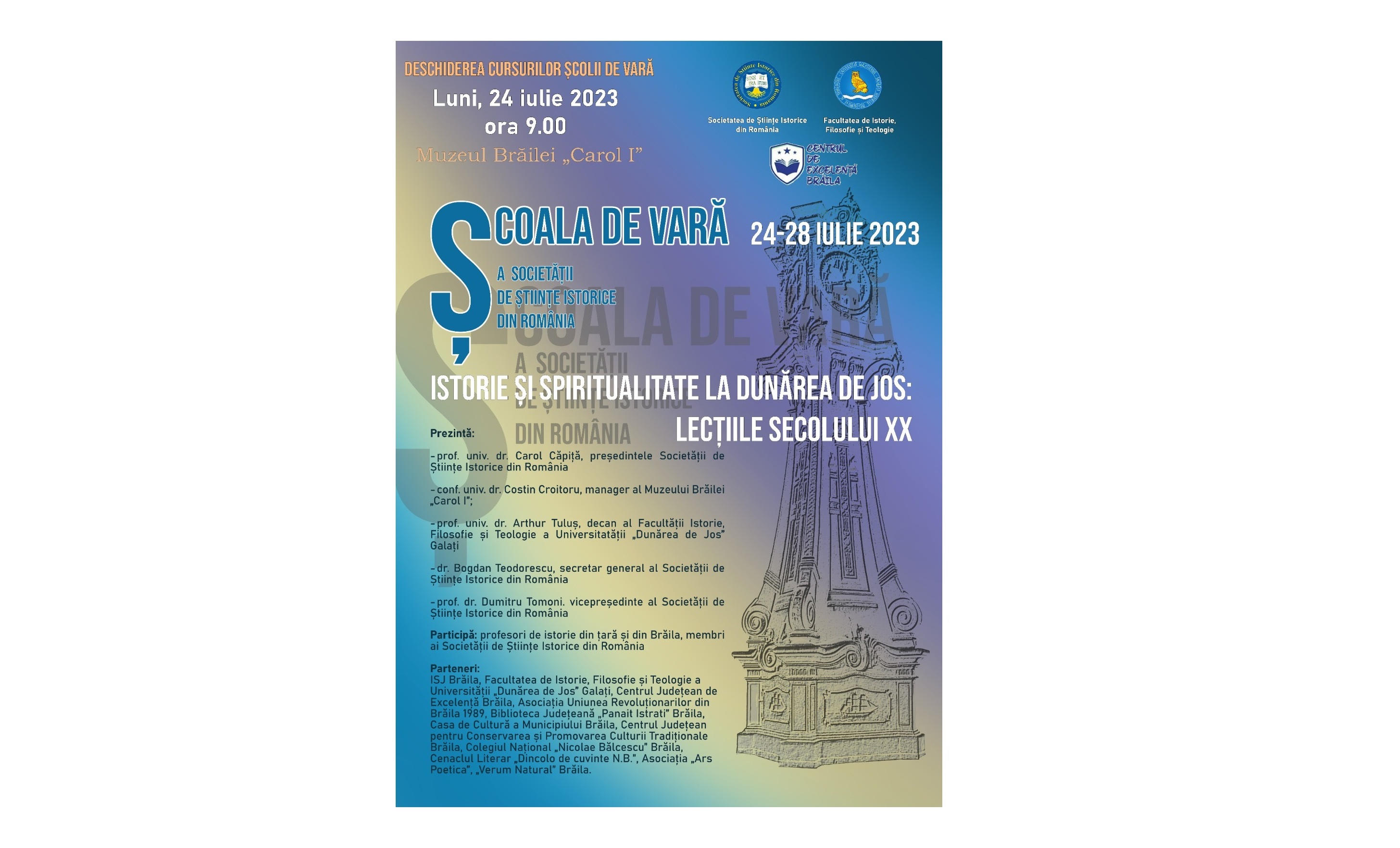 Astfel, Muzeul Brăilei „Carol I” îi invită pe brăileni în ziua de luni, 24 iulie, de la ora 9.00 la Deschiderea Cursurilor școlii de Vară a Societății de științe Istorice din România, care va avea loc la sediul central din Piața Traian nr. 3, Sala „Regele Ferdinand I și Regina Maria”.