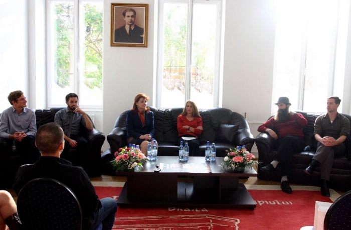 Colaborări cu artişti americani în zona muzicală, a dansului contemporan, a teatrului, a artelor plastice, acestea au fost cele mai importante declaraţii făcute, atât de Excelenţa Sa Marjorie Stern, ataşatul cultural al ambasadei Statelor Unite la Bucureşti, cât şi de viceprimarul Doiniţa Ciocan şi Lucian Sabados, managerul Teatrului "Maria Filotti", ieri, în cadruI unei conferinţe de presă prilejuită de concertul excepţional al celor patru membri ai formaţiei "Tumbling Bones".