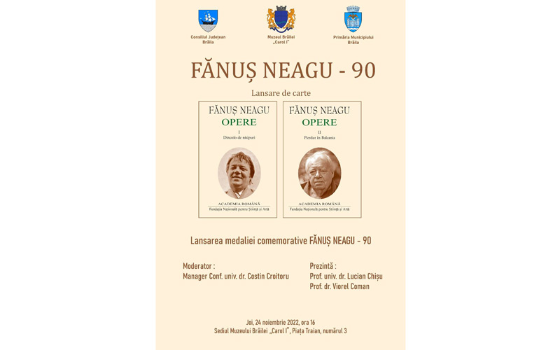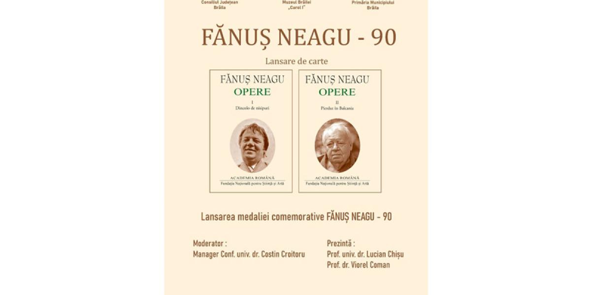 Astfel, joi, 24 noiembrie a.c., de la ora 16.00, în Sala „Regele Ferdinand I și Regina Maria” a Muzeului Brăilei „Carol I” (Piața Traian nr. 3), are loc lansarea volumelor I și II din Opere, de Fănuș Neagu. Tot astăzi, în aceeași locație, are loc lansarea medaliei comemorative „Fănuș Neagu - 90”. Volumele I și II ale Operelor lui Fănuș Neagu, incluzând „Dincolo de nisipuri” și „Pierdut în Balcania”, au apărut la Fundația Națională pentru Știință și Artă a Academiei Române.