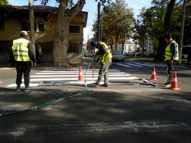 * un cumul de factori, explicați mai jos de conducerea SUPAGL, a făcut ca operațiunea să înceapă abia acum, în plină toamnă * ”Facem mai întâi trecerile de pietoni, apoi și marcajele longitudinale”, a precizat directorul SUPAGL Brăila, Dumitru Munteanu * concomitent, se lucrează la instalarea a zeci de semafoare noi, cronometre și sisteme acustice pe șase mari artere de circulație