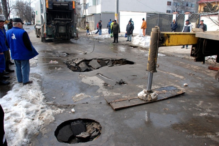 Pe străzile din zona centrală a municipiului, unde s-a lucrat în urmă cu câteva luni la schimbarea conductelor de canalizare, surpările se ţin lanţ. Compactarea superficială a terenului reprezintă un adevărat pericol pentru traficul rutier, fapt dovedit de incidentul din urmă cu o săptămână - relatat pe ediţia electronică a cotidianului nostru -, când o autoutilitară a unei firme de salubritate s-a afundat, pur şi simplu, în carosabil, cu roţile din spate. Surparea s-a produs pe Str. Rahovei, însă nici pe Plevnei nu se poate circula fără griji. Şi pe această stradă apar continuu tasări, de-a lungul fâşiei pe care a fost săpat şanţul pentru conducta de canalizare. "Nici nu mai am curaj să ţin maşina parcată în faţa porţii, fiindcă mi-e frică să nu se scufunde terenul sub ea. O las pe partea cealaltă a străzii, fiindcă acolo nu s-au săpat şanţuri şi nu sunt probleme", ne-a spus un locatar al străzii Plevnei. Acesta s-a speriat după ce, în urmă cu câteva zile, la două case mai departe, s-a format un adevărat crater în carosabil. Groapa, aflată în dreptul proprietăţii de la numărul 99, nu fusese astupată nici până ieri după-amiază, deşi trecuse aproape o săptămână de la apariţia ei. "În noaptea de vineri spre sâmbătă s-a lăsat terenul la modul cum se poate vedea aici. Se vedea dinainte că nu e în regulă, fiindcă se tot tasa, se tot tasa, până când s-a prăbuşit de tot. Când s-a produs surparea, ni s-a rupt ţeava de apă. Cei care au venit să repare zic că a fost ţeava spartă dinainte şi din cauza infiltraţiilor s-a întâmplat ce s-a întâmplat. Eu sunt convins că de vină este felul cum s-a lucrat la schimbarea canalizării. Au astupat groapa fără să compacteze aşa cum trebuie. De fapt, se vede că şi pe trotuar, unde a fost săpat de ei, nu mai este cum era înainte, a început să se lase terenul şi să se facă groapă", ne-a declarat Victoraş Rusen, locatar al casei de pe Plevnei, nr. 99.