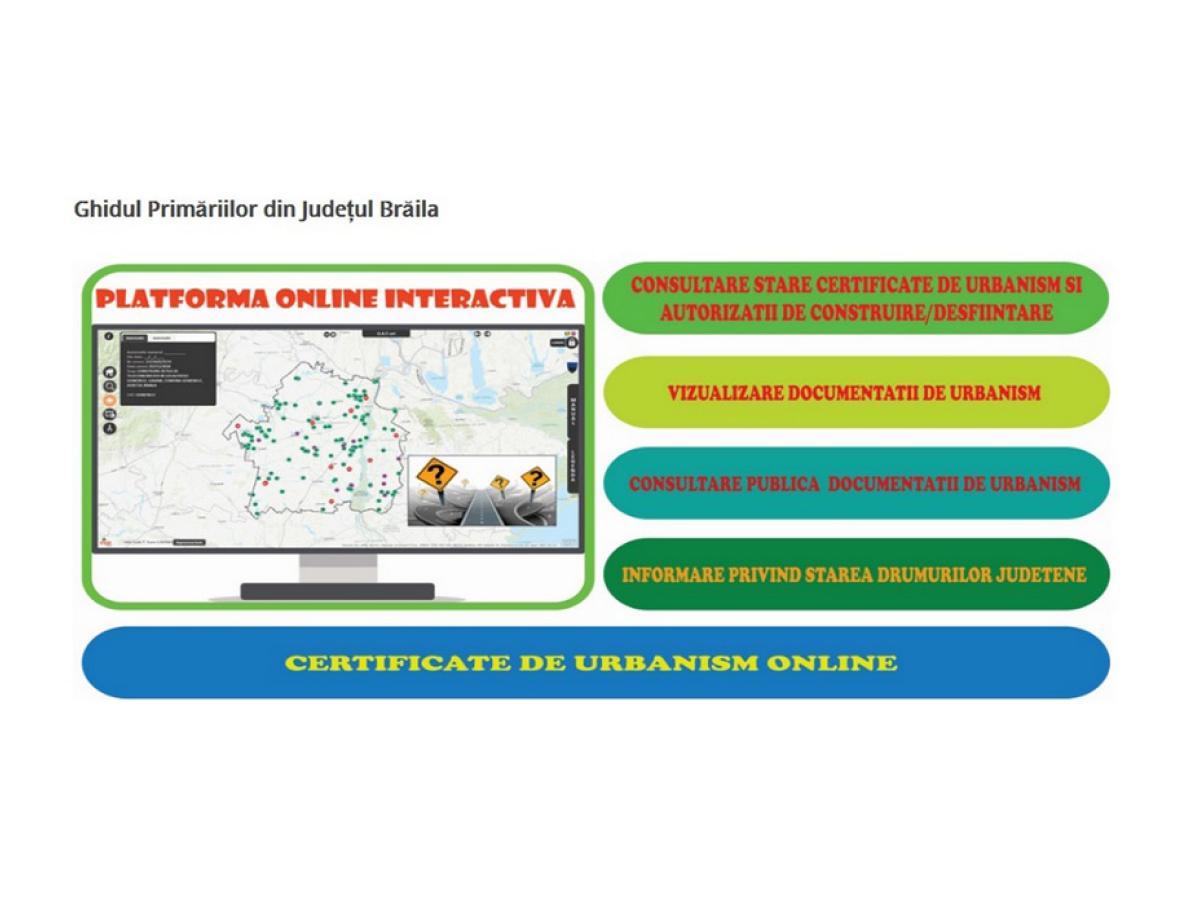 “De asemenea, platforma online interactivă va notifica în mod automat prin e-mail stadiul de emitere a Certificatelor de Urbanism, pentru toţi solicitanţii care la depunerea cererii de emitere a Certificatului de Urbanism au furnizat o adresa de e-mail validă. Acest instrument va scurta timpul de emitere a documentelor prin schimbul rapid de informaţii către cetăţeni. Prin intermediul aplicaţiei, cetăţenii cu adresa de e-mail validă furnizată în cererea de emitere a Certificatului de Urbanism, vor fi notificaţi cu privire la înregistrarea cererii şi procesării documentelor în vederea emiterii Certificatului de Urbanism; finalizarea Certificatului de Urbanism; expirarea Certificatului de Urbanism. În mod practic, cu doar câteva click-uri, accesând linkul https://gis.cjbraila.ro/ acest sistem online vine în sprijinul oricărei persoane care are nevoie de un certificat de urbanism, dar mai ales în sprijinul potenţialilor investitori sau al cetăţenilor aflaţi în alte oraşe ale ţării ori în străinătate, care nu vor mai fi nevoiţi să vină la consiliul judeţean pentru depunerea cererilor şi documentelor necesare”, se arată în comunicatul postat de CJ Brăila.