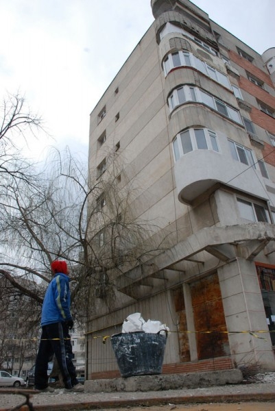 După incidentul din urmă cu câteva zile şi după amenda aplicată de Poliţia Locală, AP 216 a găsit resursele necesare pentru angajarea unei firme de alpinism utilitar, în vederea reparaţiilor necesare pe latura de unde începuseră să cadă bucăţi de beton. Ieri, alpiniştii începuseră deja treaba. Aceştia ne-au declarat că lucrarea este destul de complexă şi necesită câteva zile pentru finalizare.
