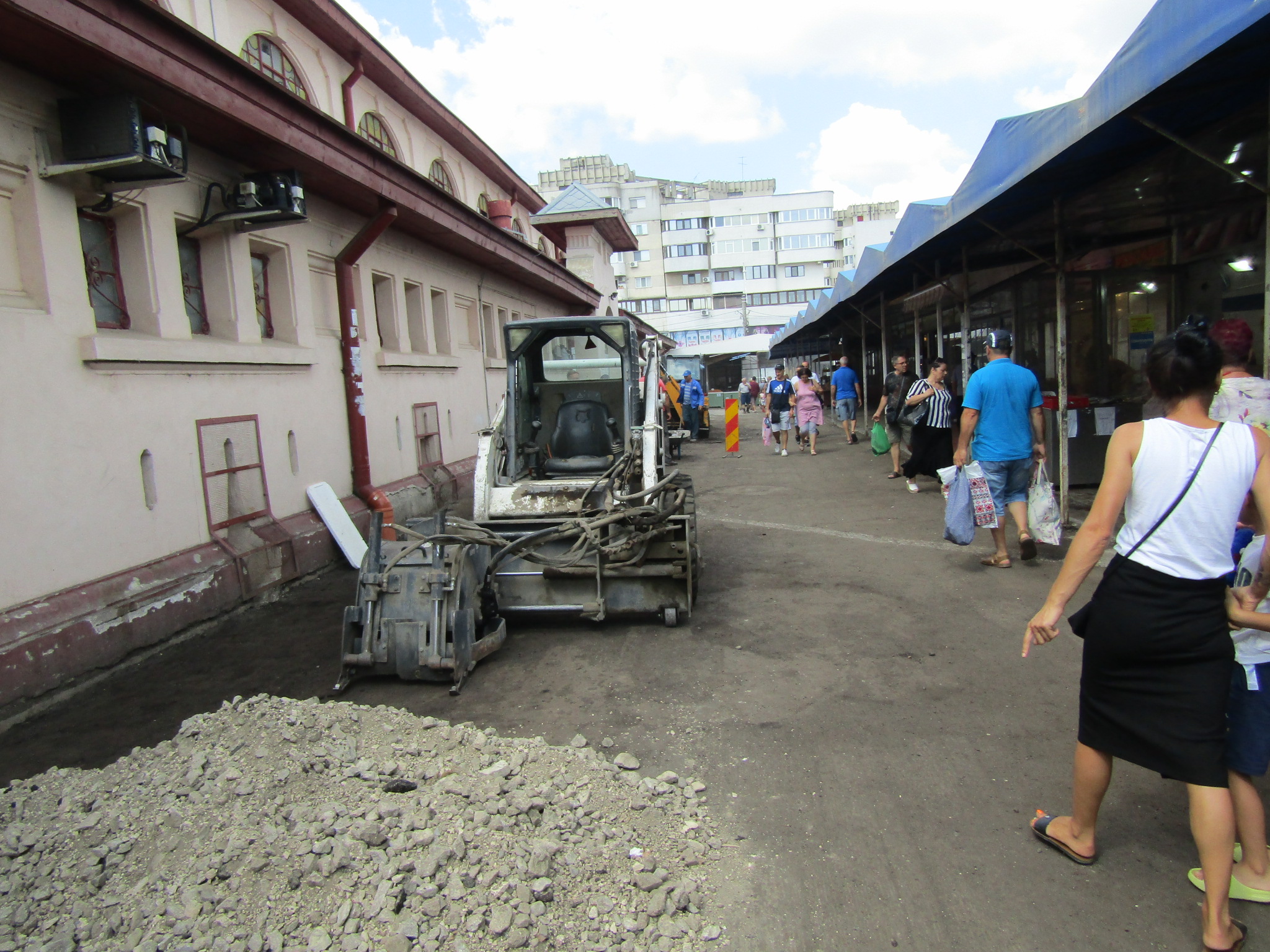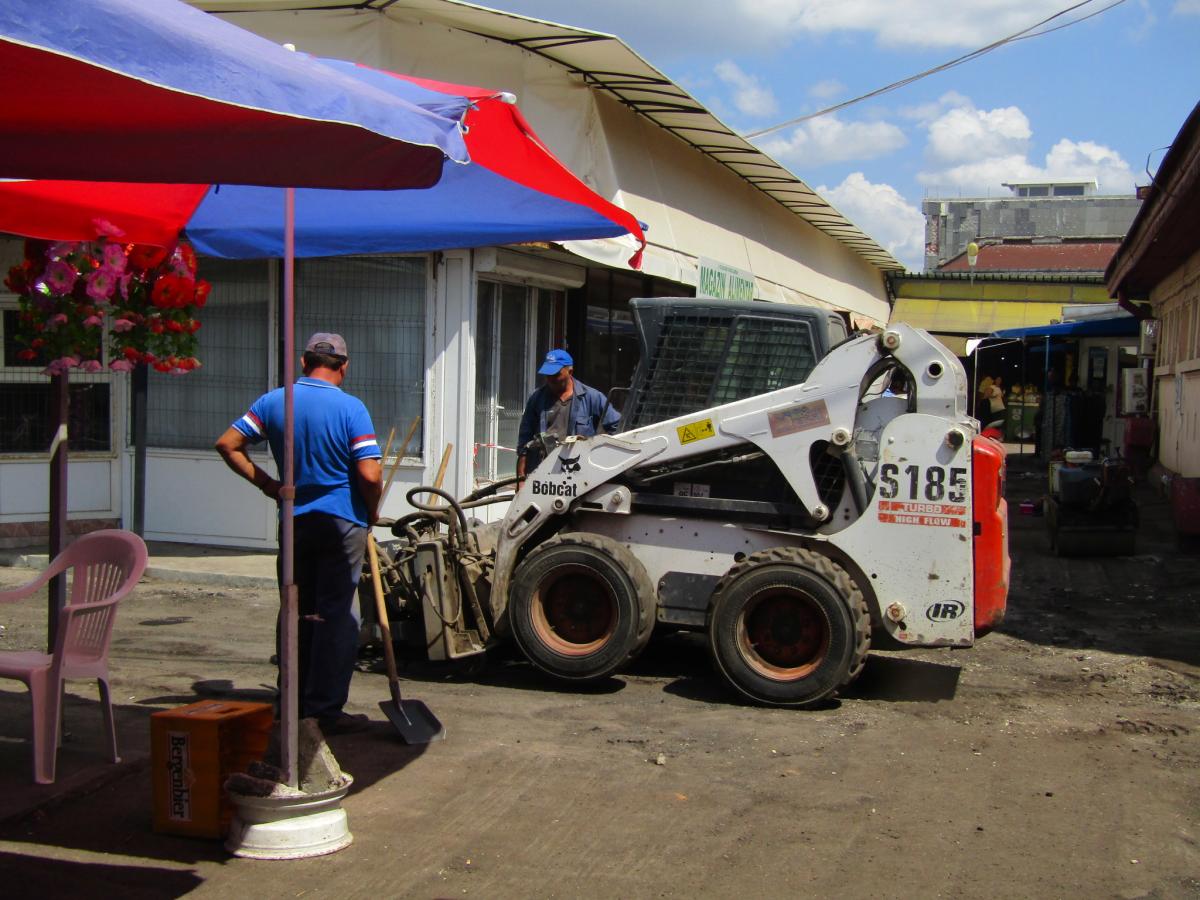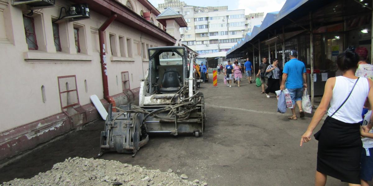 Concomitent cu igienizarea halei centrale din Piaţa Mare s-a trecut şi la asfaltarea aleii dintre spatele acesteia. Mai exact, a spațiului dintre Hala Mare și magazinele unde se comercializează pește. Din păcate, nu se fac reparații și în spatele acestor magazine, acolo unde se face aprovizionarea cu peşte. Aici, firma care face asfaltarea din piață, Promotas SRL, nu acţionează, deoarece, după cum ne-au spus meseriașii pe care i-am găsit la fața locului “nu s-a primit ordin decât pentru porțiunea din spatele halei“.