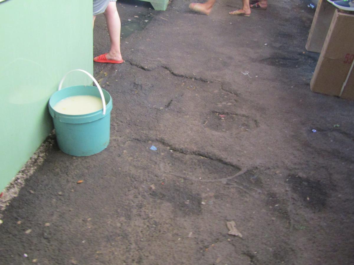 * din păcate, strada din spatele pescăriilor nu va beneficia de reparații, deși e plină de gropi în care se scurg permanent reziduuri de la spălarea peștelui, zeamă de varză acră, apă sărată etc * ni s-a explicat că această stradă va fi asfaltată după ce se va da în folosință noua Piață de Pește, moment în care actualele pescării vor primi altă destinație